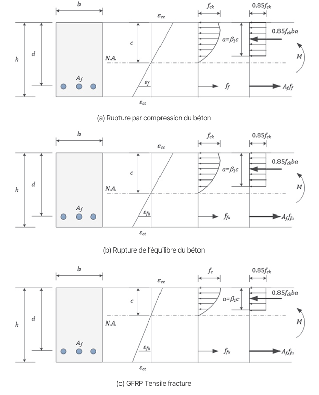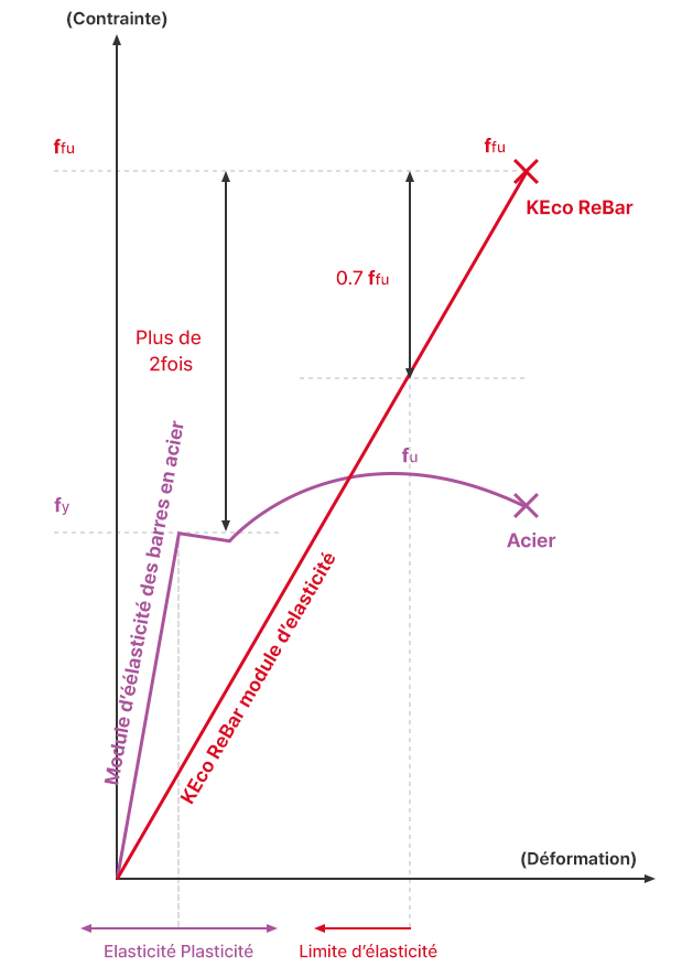 ▶ Contrairement aux barres d’armature en acier, comportement de contrainte-déformation linéaire sans comportement d’élasticité avant rupture
